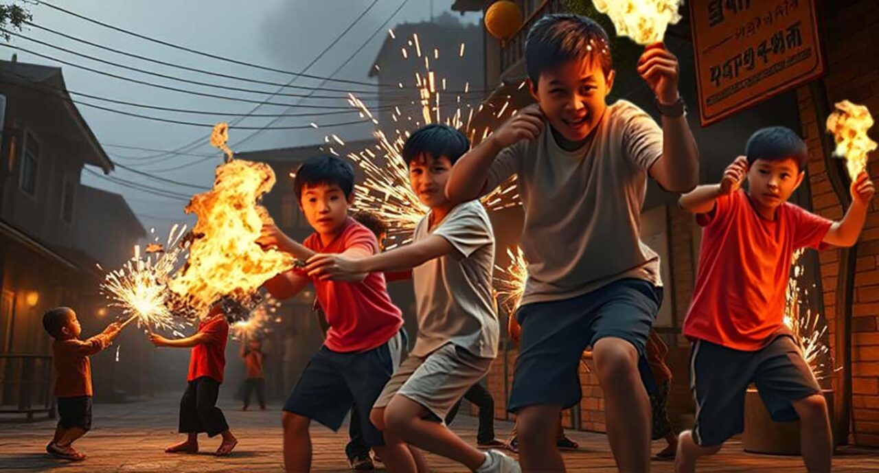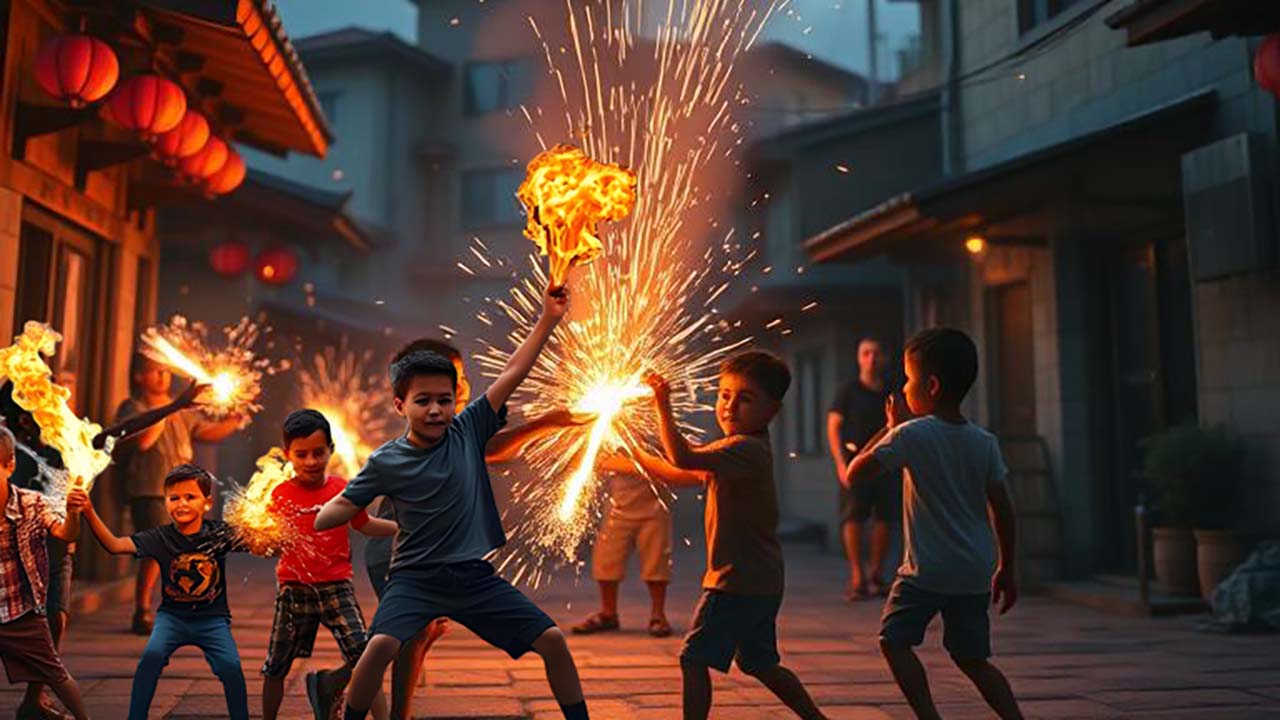 我爸每晚定時會從我家走出來,站在門前一個安全位置,以免被沖天炮誤傷,然後連著吆喝幾聲:「全部給我回家了」。真的,連喊著幾聲後,一切就安靜了。當他們都回家後,我爸就會問我,當晚去兩個戰區時,他們有沒有新加入的隊員?我爸依照我的回報能判斷出當天實際戰況與勝負。沒有觀戰的他到底是如何分辨出來?我爸笑著說,要看加入的人呀,壓歲錢多買鞭炮的數量增加,進攻能力就變強。腦子動的快的,武器設計,或是新戰術,還要要看新隊員加入後是否合得來,這對團隊氣勢來說都很重要。