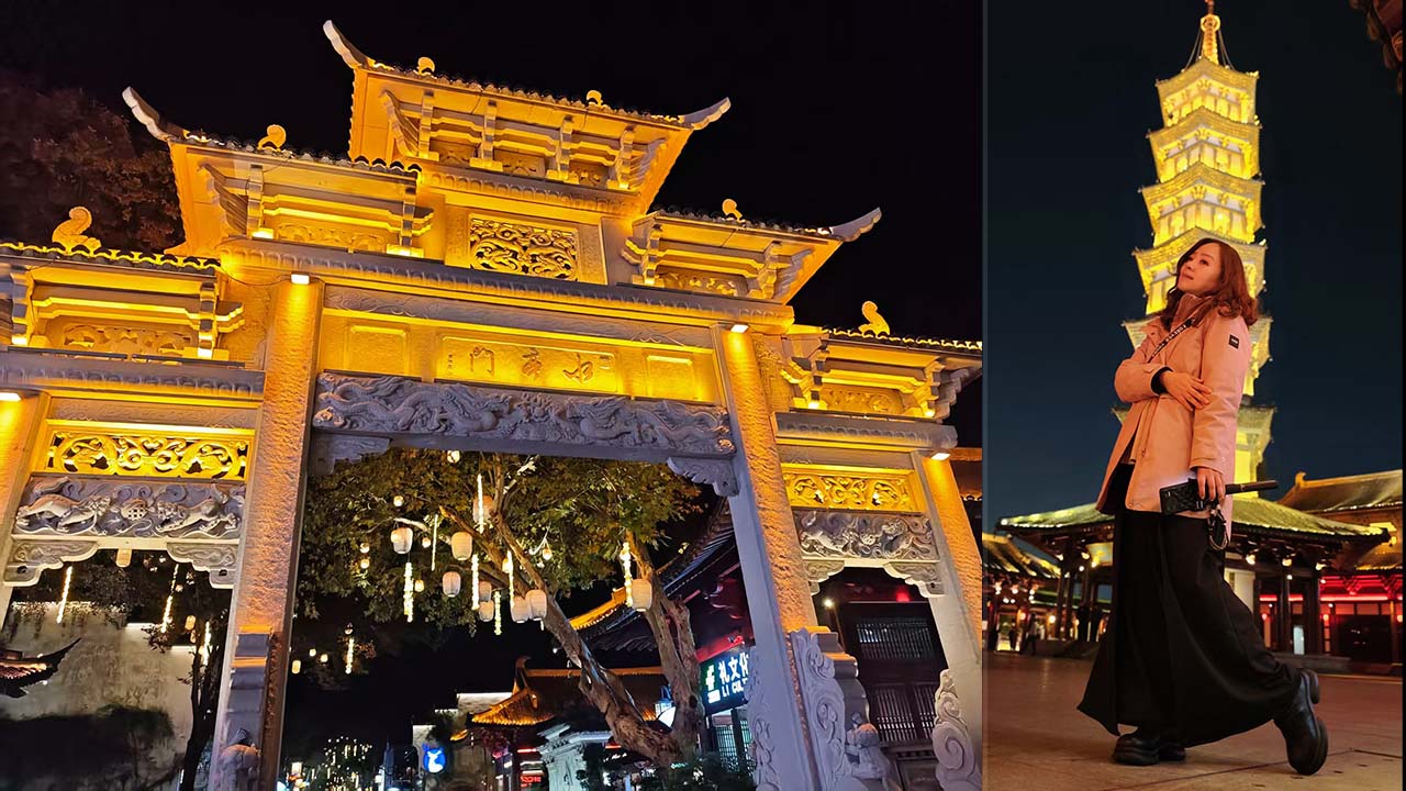 隔天,旅程再次轉場,來到了新地方,有一種令人想再深入瞭解的期待。白日里初見它的牌樓就被其所吸引,水亭門這幾個字就如水波動的頻率直擊我心。佇立在旁氣勢磅礡的天王塔,氣質和名稱完全匹配。我想入夜之後的此地,該是我前往時空另一端的通道,懷著這樣的念頭,入夜之後再度造訪。果然不負期待,此地夜晚是古今交錯融合的佳景。