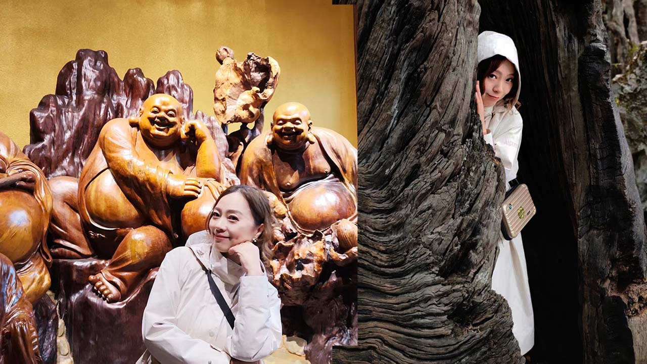 羅漢長廊里的氣場,不能說是仙氣飄飄,更多的像是體現了挺胸凸肚的好漢被拘束的不甘吧!微妙微俏的讓他們都期待再度出巡服妖,然而身軀已被禁錮在盤根中。穿過長廊,彷彿聽見羅漢之間的對話,聲聲入耳都擾亂了我的呼吸節奏。好在,後有四尊大佛平整方才的氣場,倒也讓我有機會吐納均勻,緩和心跳,繼續瀏覽後面那些鬼斧神工的根雕所展現的民間故事。突如其來的入夜寒風讓人發抖,這個充滿各種故事的根雕作品中,夾雜著不可言喻的奇幻世界,真的成了一場難忘的場景體驗。