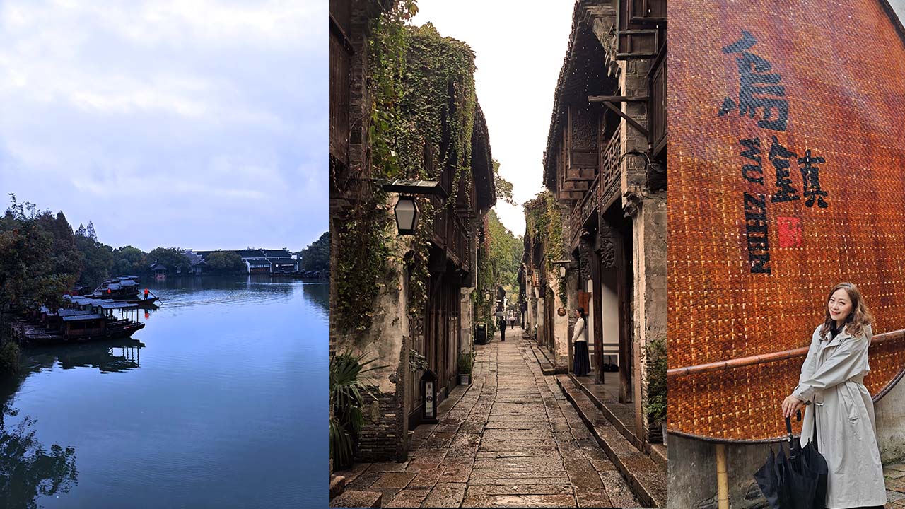 在各個會議和論壇間穿梭之外,即使是煙雨濛濛的天氣裡,我撐著雨傘走在青石板路上,穿過一座又一座的小橋,望著河上獨自撐船篙的船伕,小船在綠波上緩緩前行,雨滴打在河面,兩旁的房子和樹林倒影,從靜謐變化成蕩漾的波紋,帶來不同韻味的映象藝術。大自然總愛用不同的方式自由創作,將眼前的景緻擺設出不同的風貌,無論陰晴變化或煙雨濛瀧,烏鎮在此為我詮釋了江南的美。